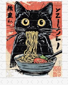 Japanese style cat eating noodles 1