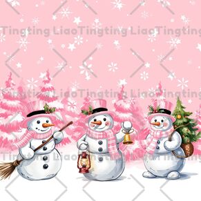 Christmas,Winter,Snowman,Pine,Christmas Tree,Snowflakes,Stars,Watercolor,Art,Retro