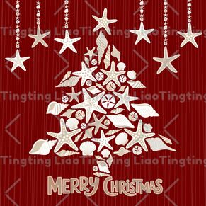 Christmas,Winter,Summer,Ocean,Christmas Tree,Shell,Starfish,Conch,Art,Retro,Beach