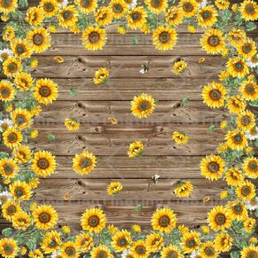 Watercolor Flowers,Sunflower,Farm,Farmhouse,Country,Vintage,Idyllic,Bee,Brown Wood Grain
