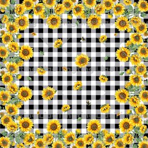 Watercolor Flowers,Sunflowers,Farm,Farmhouse,Country,Vintage,Pastoral,Bee,Black And White Check