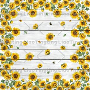Watercolor Flowers,Sunflowers,Farm,Farmhouse,Country,Vintage,Idyllic,Bee,White Wood Grain