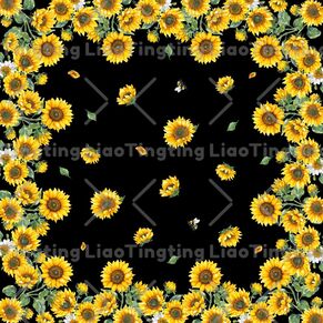 Watercolor Flowers,Sunflowers,Farm,Farmhouse,Country,Vintage,Pastoral,Bee,Black Bottom