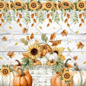 Autumn,Pumpkin,Sunflower,Maple Leaf,Deciduous,Pastoral,White Wood