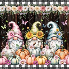 Watercolor Check,Pumpkin,Daisy,Sunflower,Rose,Butterfly,Deciduous,Pastoral,Brown Wood