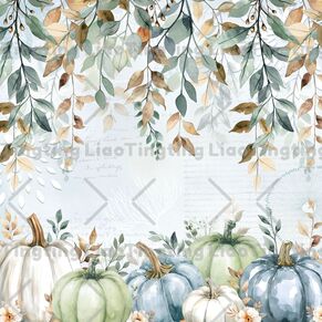 Thanksgiving,Autumn,Eucalyptus Leaves,Leaves,Plants,Green Pumpkin,White Pumpkin,Blue Pumpkin,Light Blue Letter Background