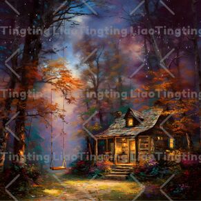 Autumn,Forest,Country,Cabin,Swing,Pastoral