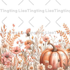Autumn,Thanksgiving,Flowers,Pumpkin,Wild Flowers,Watercolor Style,Country
