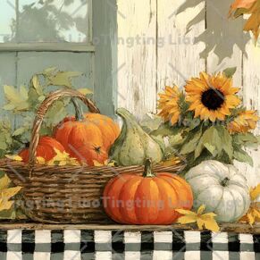Autumn,Thanksgiving,Pumpkin,Flower,Retro Style,Checkered,Hand Painted,Country Style,Oil Painting