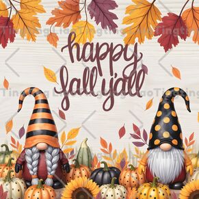 Autumn,Thanksgiving,Pumpkin,Flower,Gnome,Fallen Leaves,Cartoon Style