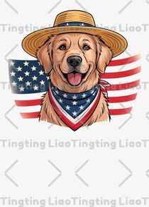 Labrador,Patriot,Cowboy Hat,American Flag,Cartoon,Puppy