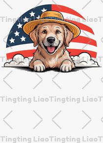 Labrador,Patriot,Cowboy Hat,American Flag,Cartoon,Puppy,White Clouds