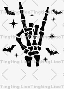 Halloween,Skeleton Hand,Rock Gesture,Skeleton,Small Bat,Stars