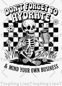 DON'T FORGET TO HYDRATE & MIND YOUR OWN BUSINESS,Skull Pattern,Hydrating Reminder,Mind Your Own Business,Trend Personality