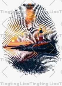 Creative Illustration,Fingerprint Texture,Lighthouse Sunset,Art Fusion,Natural Creativity