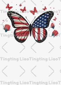 Creative Illustration,American Flag Butterfly,Red Butterfly,Rose,American Style