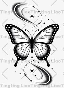 Black And White Butterflies,Creative Illustrations,Tattoo Designs,Meteor Stars,Mysterious Art