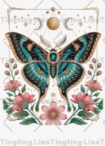Moths,Flowers,Moon,Stars,Vintage Border,Illustration,Nature,Art,Mystery