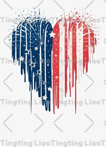 Heart,American Flag Element,Drip Effect,Fireworks,Stars,Patriotic,Decorative,Art,Colors,Independence Day