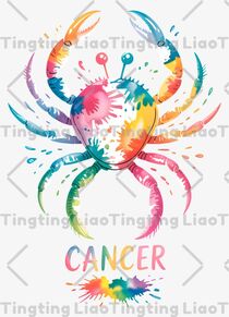 Cancer,Crab,Watercolor,Colorful,Constellation,Illustration,Art,Decoration,Drip Effect,Cute