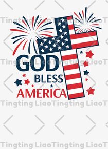 American Flag Element,Cross,Fireworks,"GOD BLESS AMERICA," Patriotism,Religion,Decoration,Art,Color,Celebration