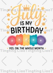 July Birthday,"July Is My Birthday," Crown,Stars,Fireworks,Celebration