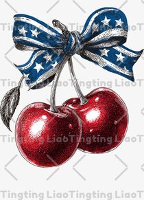 Independence Day,Flag Elements,Cherry Illustration,Retro Hand Painting,Sweet And Exquisite,Decoration,Fruit Art