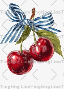 Independence Day,Flag Elements,Cherry Illustration,Retro Hand Painting,Sweet And Exquisite,Decoration,Fruit Art