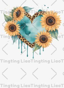 Sunflower,Heart Pattern,Leopard Pattern,Ink Blue,Trend Art
