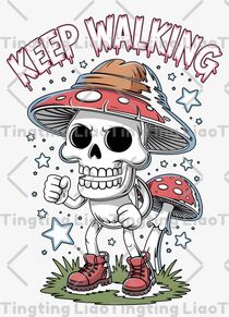 Cartoon,Illustration,Skull,Mushroom Hat,Mushroom,Grass,Boots,KEEP WALKING,Stars,Adventure,Motivation,Bones