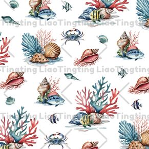 Coral,Hand-painted,Watercolor,Marine Creature,Shell,Vintage,Medieval