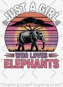 JUST A GIRL WHO LOVES ELEPHANTS,Elephant Theme,Love Elephant,Trend Style,Retro Sunset,Girl And Elephant