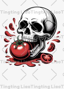Skull,Tomato,Red,Horror,Black,Teeth,Skull