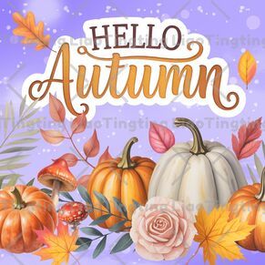 Watercolor,Medieval,Flower,Leaf,Mushroom,Pumpkin,Thanksgiving,Letter Hello Autumn