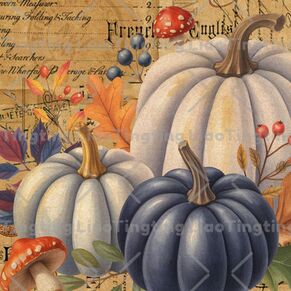 Watercolor,Medieval,Vintage,Flowers,Leaves,Mushrooms,Pumpkin,Thanksgiving