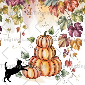 Pumpkin,Autumn,Jam,Leaf,Vine,Cat,Watercolor