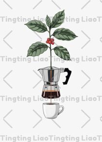 Minimalist,Illustration,Coffee,Tree,Mocha Pot,Coffee Liquid,Cup,Nature