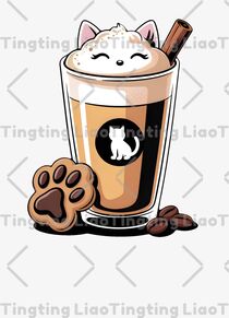 Cartoon,Cute,Cat,Coffee,Cat's Paw,Biscuits,Coffee Beans,Gourmet,Cute,Animal,Straw,Cup
