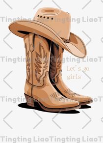 Cartoon,Western,Cowboy,Boots,Hat,Let's Go Girls
