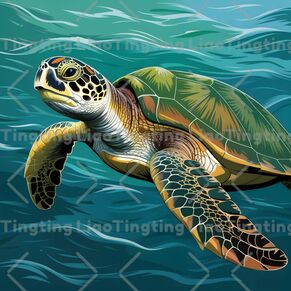 Ocean,Turtle,Sea Water,Watercolor,Retro