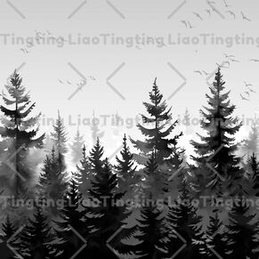 Watercolor,Forest,Bird,Dark Gray,Vintage,Farmhouse