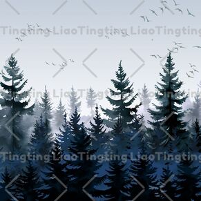 Watercolor,Forest,Bird,Dark Blue,Vintage,Farmhouse