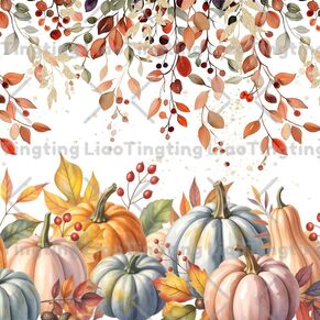 Autumn,Pumpkin,Thanksgiving,Vintage,Medieval,Watercolor,Farmhouse,Eucalyptus Leaves