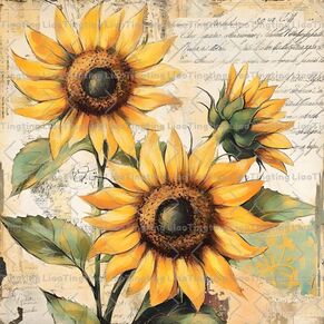 Sunflower,Flower,Watercolor,Vintage,Texture