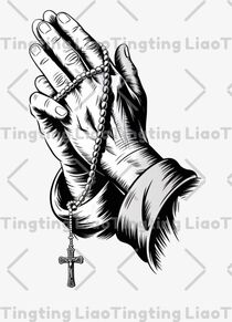 Black,White,Realistic,Classic,Blessing,Rosary Beads,Prayer Gesture