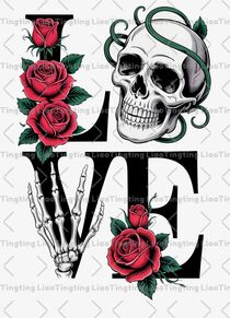Red,Black,Green,Classic,Art,Love,Culture,Love,Skull,Rose,Skeleton Hand