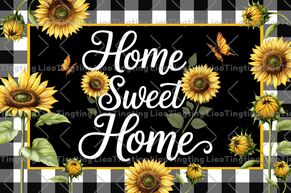 Pastoral,Sunflower,Butterfly,Text,Plaid,Home Sweet Home