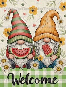 Idyllic,Gnome,Daisy,Wildflower,Plant,Watermelon,Ice Cream,Plaid,Text,WELCOME