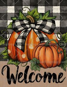 Pastoral,Autumn,Pumpkin,Plaid,Polka Dot,Text,WELCOME