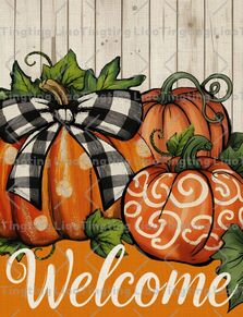Pastoral,Autumn,Pumpkin,Plaid,Polka Dot,Wood,Text,WELCOME